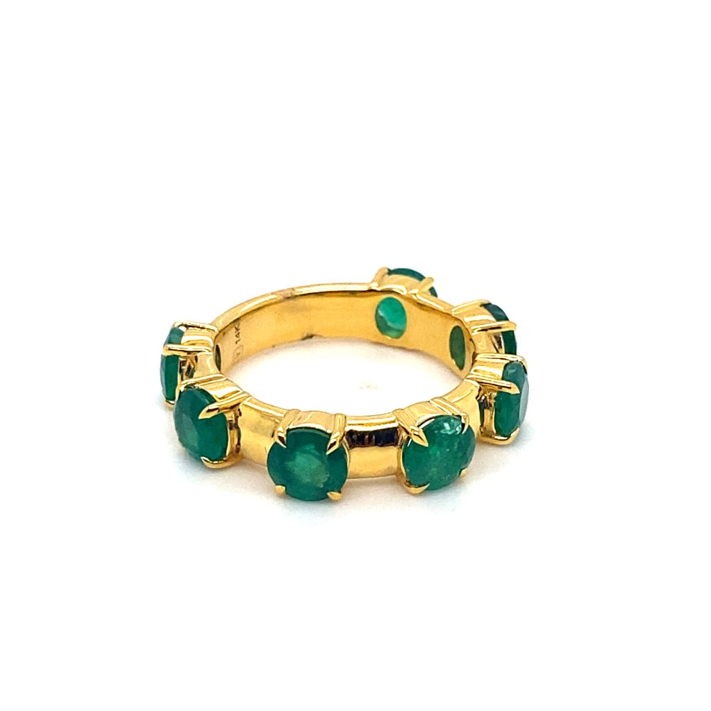 This piece has a powerful point of view on a statement band, both timeless and bold yet can be layered effortlessly. This band is polished in 14k yellow gold and boasts the vibrance of Gemfields Zambian Emeralds 3.08 cts.